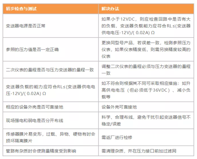 變送器設(shè)備本身故障問題
