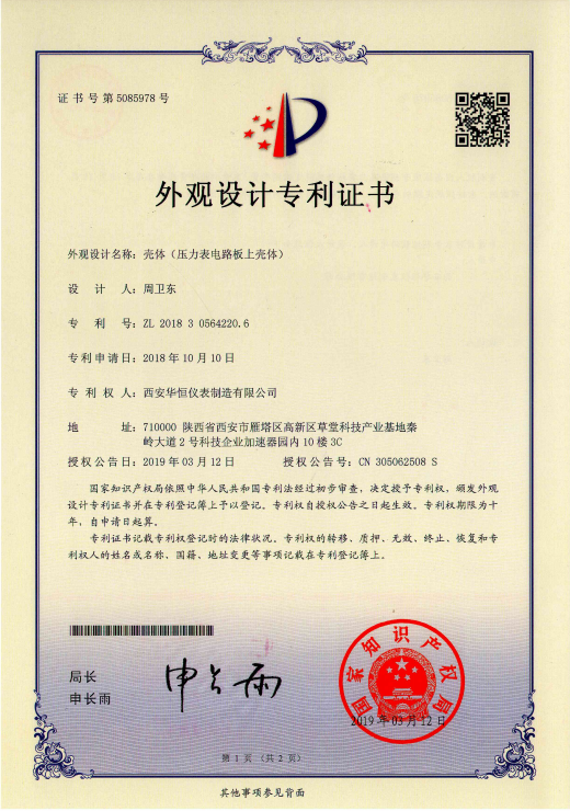 外觀設(shè)計(jì)專利證書(上殼體)