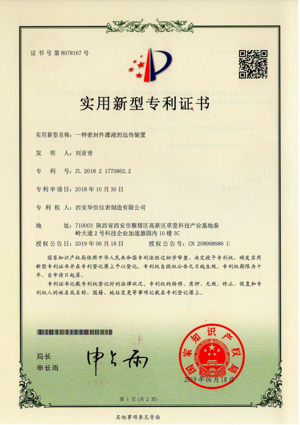 一種密封件灌液的遠(yuǎn)傳裝置