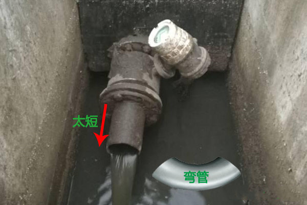 3、顯示報(bào)警可能是管道內(nèi)介質(zhì)不滿管或半管的原因造成的,此時(shí)可以在出水口加裝一個(gè)彎管保證管道滿管圖。
